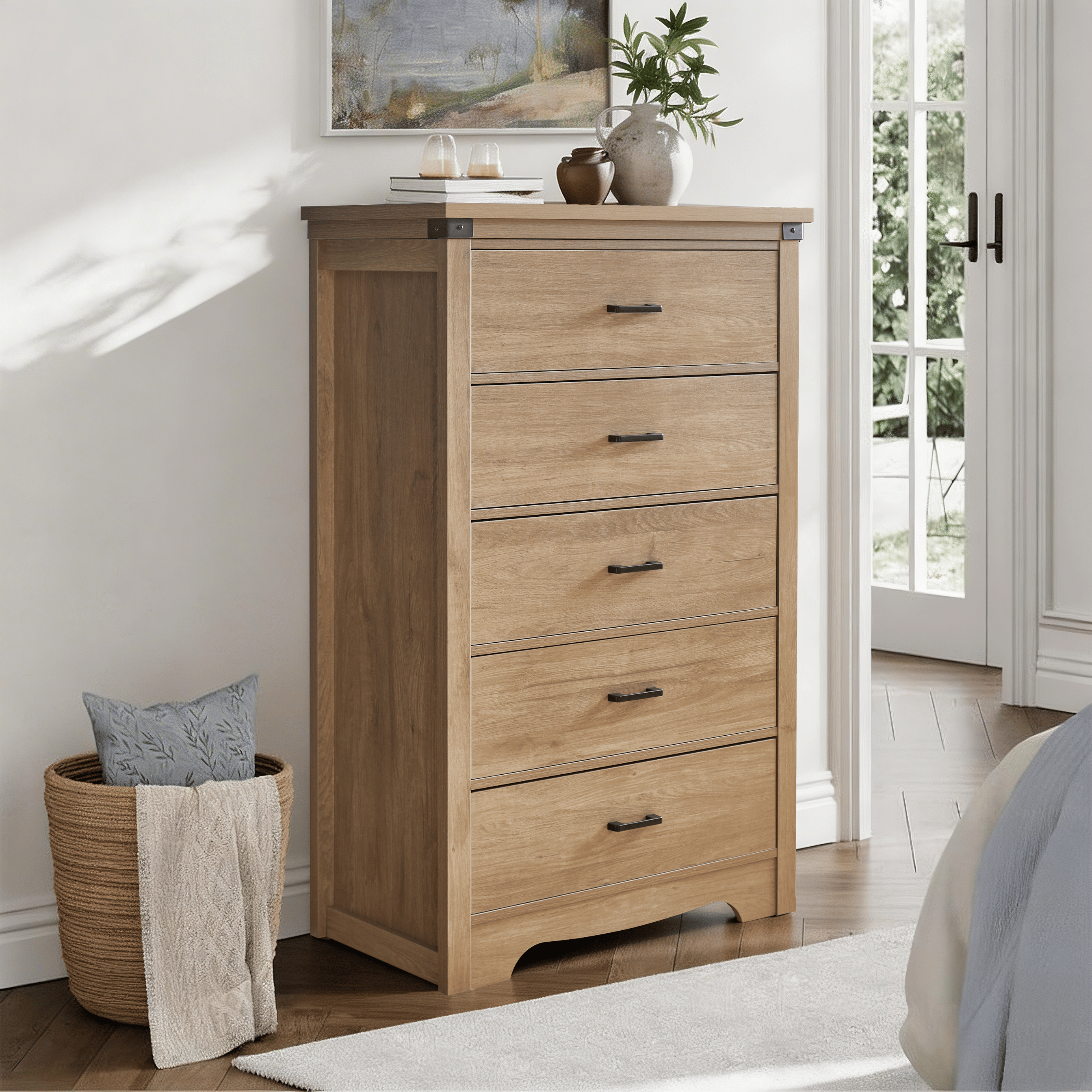 5.Easy Assembly & Protective Packaging: Enjoy a smooth setup process with the help of a detailed, illustrated manual. This farmhouse tall brown dresser is also packaged with reinforced materials to reduce the risk of damage during delivery, making it a safe and smart oak color dresser organization.